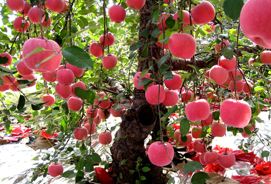 蘋果在生長期實際需水一般為180毫米,約為自然降水量1/3,因此年降水量達(dá)到540毫米即可。在4~9月降水量在450毫米以下的地區(qū)則需要灌水,中國北方降水量分布不均,70~80%集中在7~8月 間,春季則水量不足。在內(nèi)陸降水量少的地區(qū),水量不足,因此在建園選地時,必須考慮到灌溉條件和保墑措施,同時也要注意雨季排水措施。